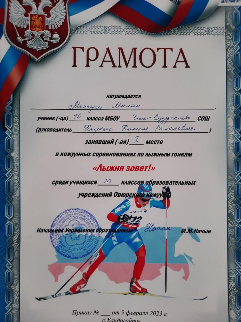 9 февраля 2023 года состоялись соревнования по лыжным гонкам «Лыжня зовет»— среди учащихся образовательных учреждений Овюрского кожууна. Несмотря на холодную погоду наши учащиеся попытали свои силы на лыжной трассе. В итоге мероприятия определены почетные места. Наши школьники-спортсмены заняли 1-2 места. Победители были награждены грамотами.Поздравляем наших ребят! Вы у нас самые лучшие!!!