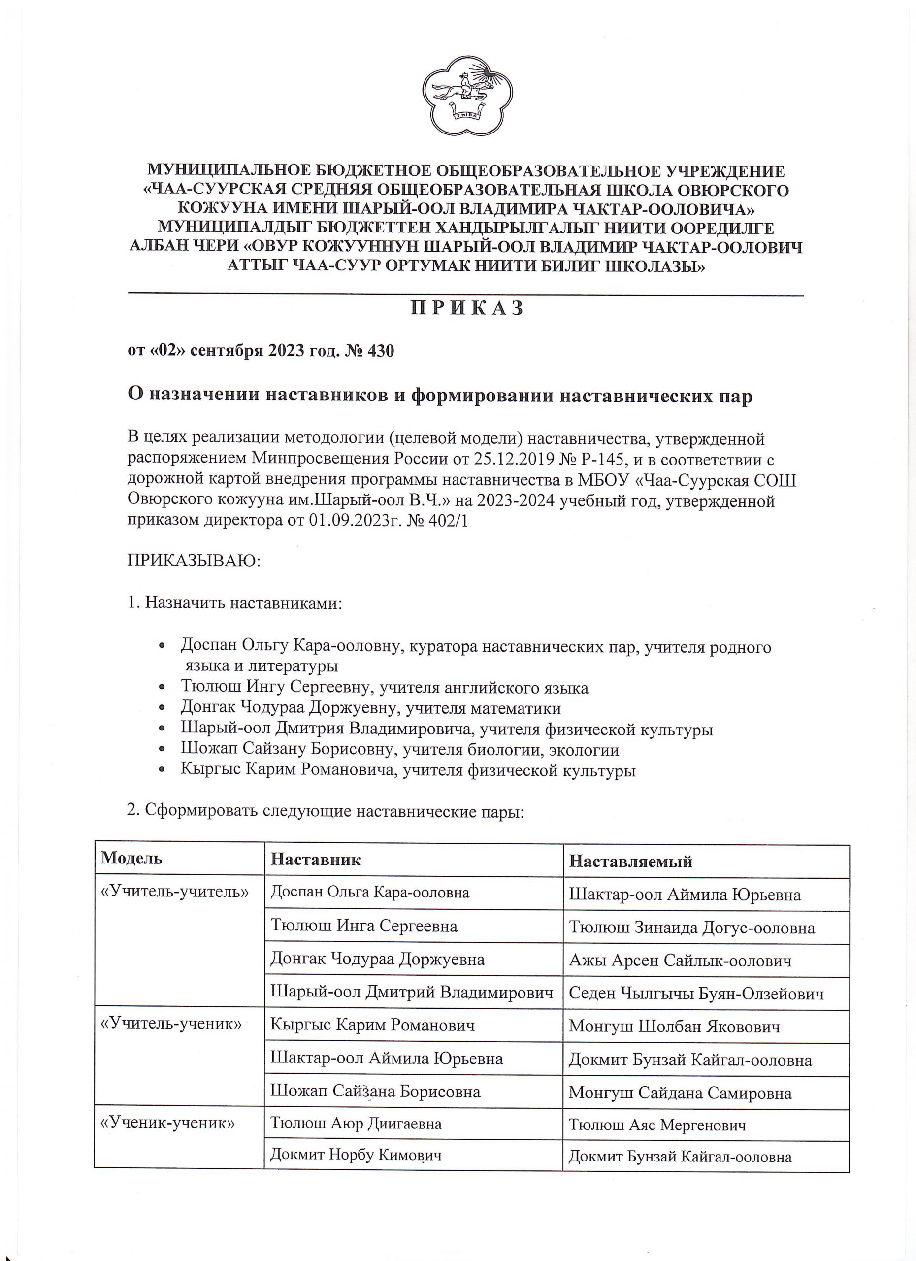 Банк данных База данных наставников 2023-2024 уч.годСкачать Приказ О назначении наставников и формировании наставнических пар» Скачать Скачать